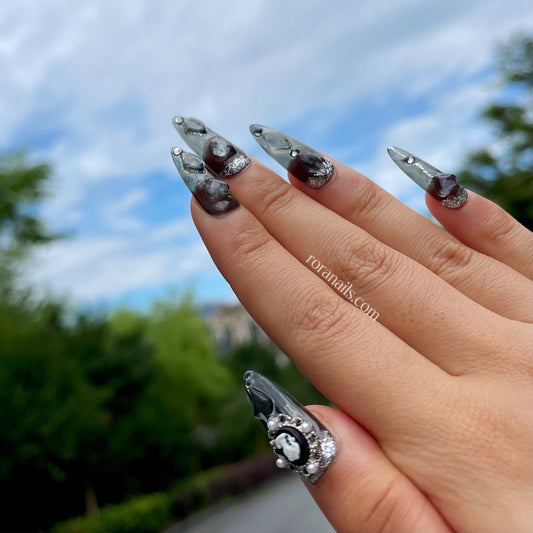 Gray Chlor Heart Nails