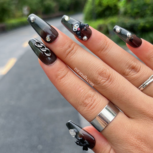 cute black kulomi long nails