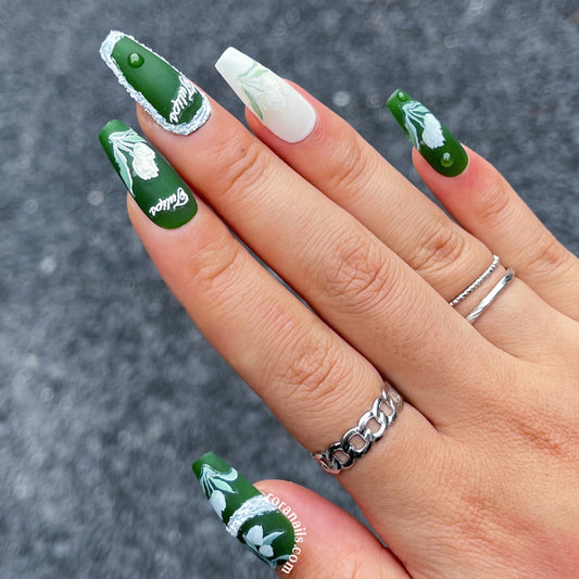 Green Embossed Tulips