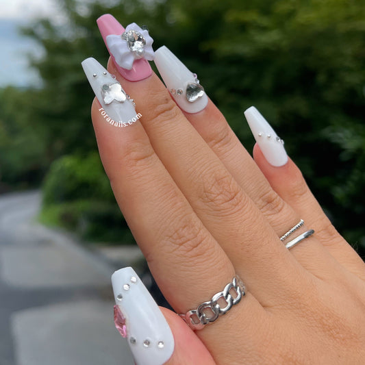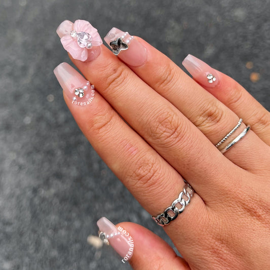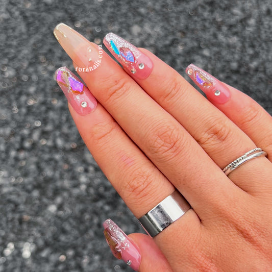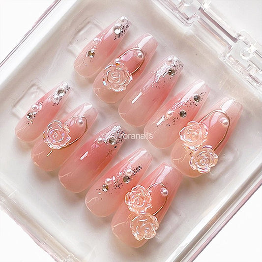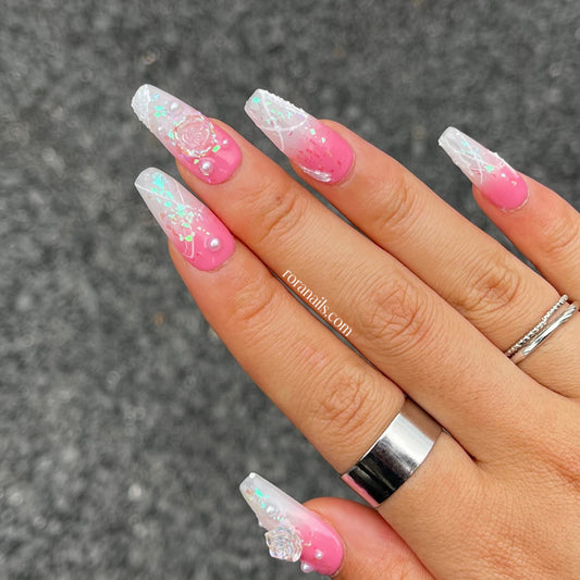 Pink rose irregular long nails