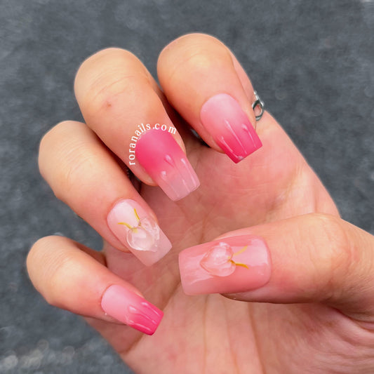 Summer Peach Short Cute Nail Art